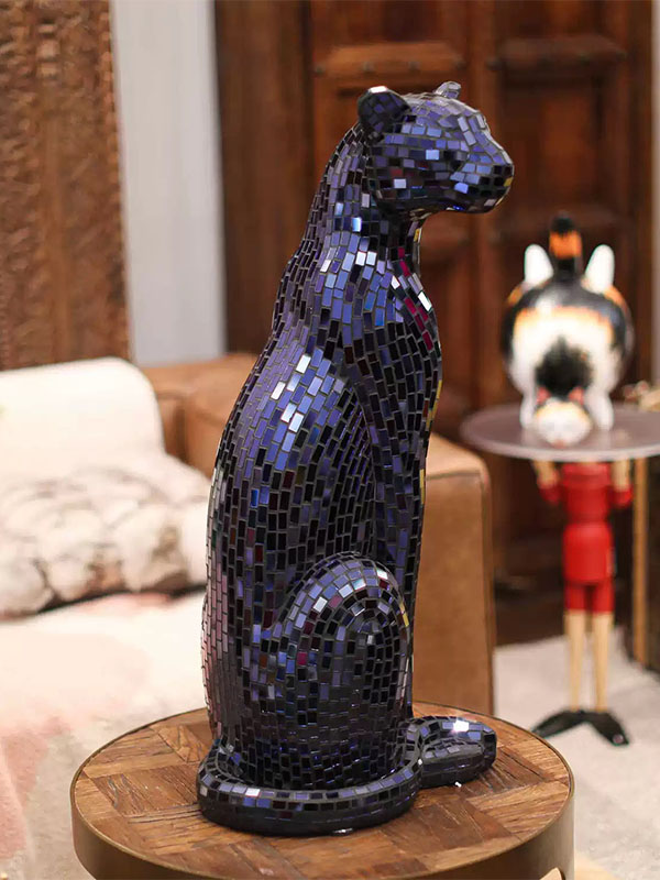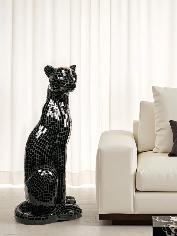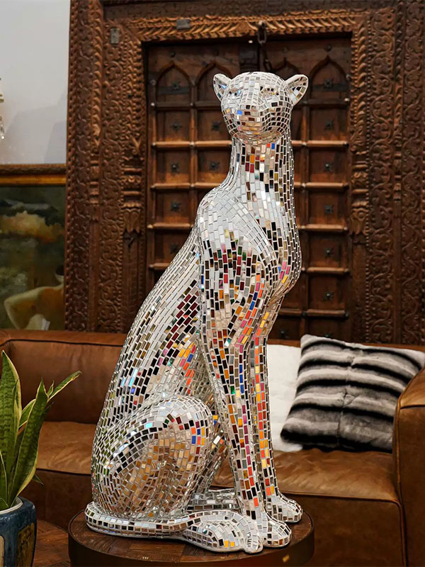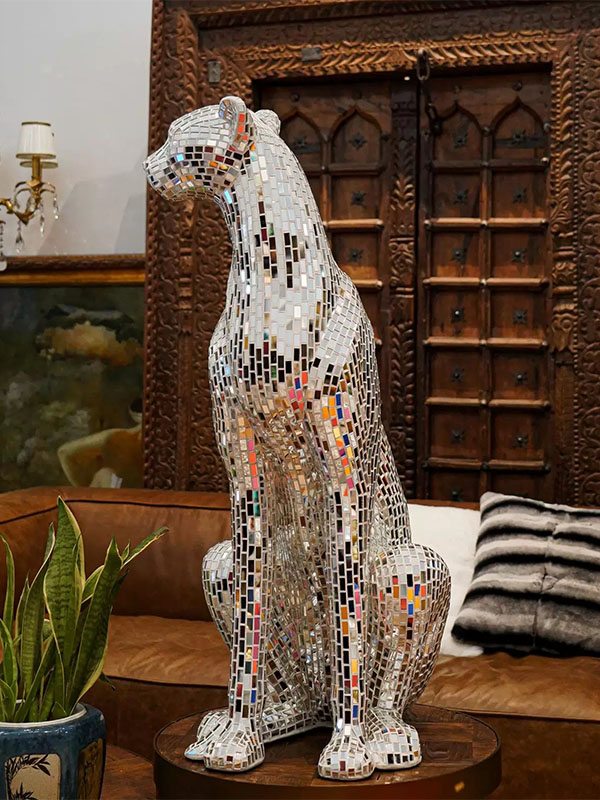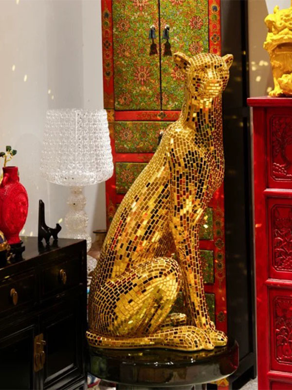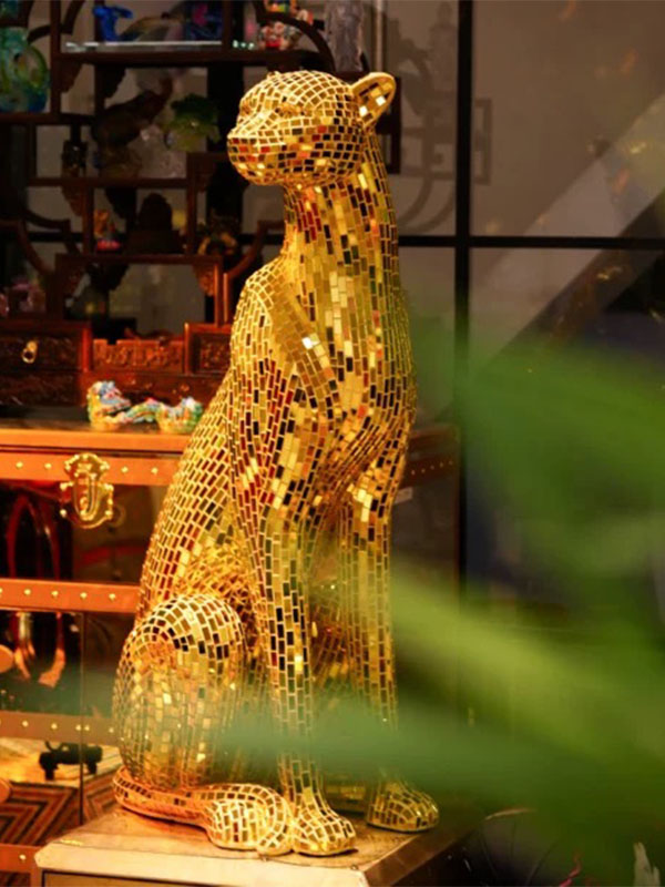 La escultura del animal leopardo es una hermosa y única obra de arte diseñada y producida con el tema del leopardo. Combina técnicas tradicionales de escultura y. El tamaño de la escultura de leopardo en mosaico se puede personalizar según las necesidades de los clientes. Esculturas de mosaico Se puede utilizar como decoración interior o exterior, como hogares, oficinas, edificios públicos, jardines o parques. No sólo son ornamentales, sino que también muestran el gusto y la singularidad del propietario, añadiendo una atmósfera artística al entorno.